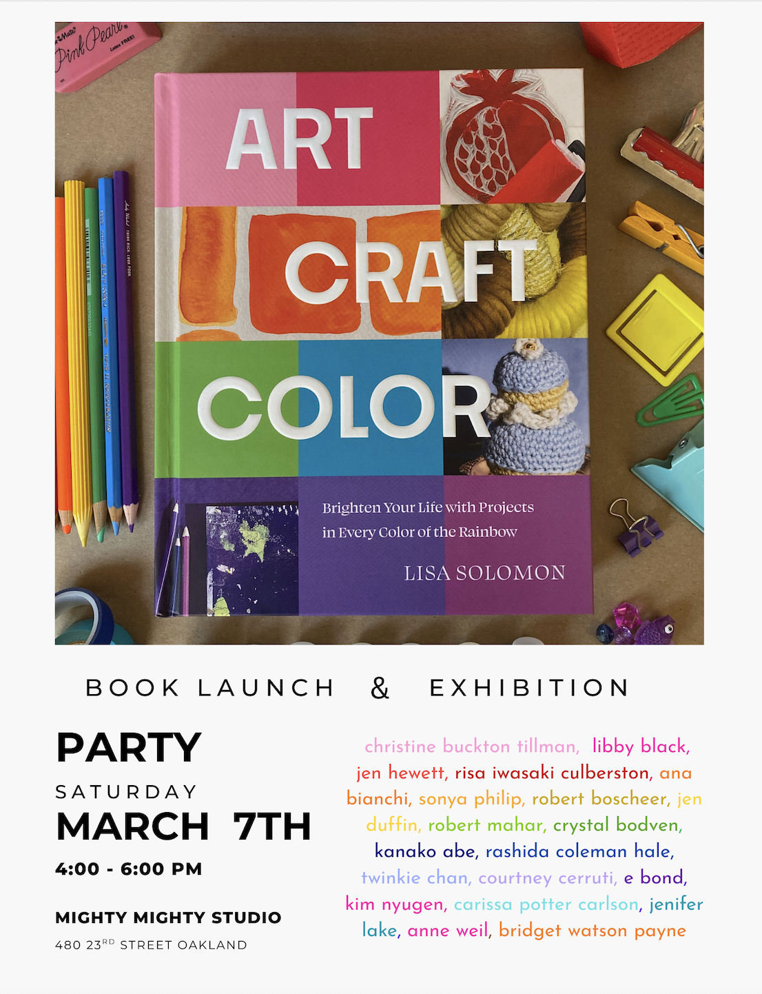 We’re celebrating the release of Art Craft Color by Lisa Solomon with a party at Mighty Mighty Studio.